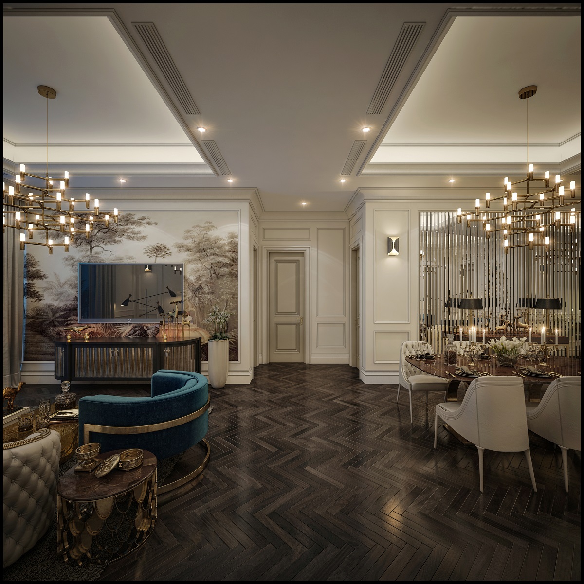 Thiết kế thi công căn hộ Hà Đô Centrosa Iris 4 theo phong cách hiện đại, sử dụng tông màu trắng, đen, xám là chủ đạo. Đây là gam màu trung tính, dễ dàng phù hợp với sở thích của nhiều người. Bên cạnh đó, KTS của AIC JSC cũng sử dụng màu xanh dương làm điểm nhấn cho căn hộ. Tone xanh dương được các KTS thể hiện khéo léo qua các vật dụng, phụ kiện trang trí trong nhà. Tạo cảm giác sang trọng nhưng không kém phần ấm cúng. Bên cạnh đó, phòng ngủ được thiết kế một cách hiện đại, tối ưu không gian sinh hoạt cho mỗi thành viên. Nhưng vẫn thể hiện được cá tính riêng của mỗi chủ nhân căn phòng. Giúp mọi người có được những giây phút thật thư giãn và thoải mái. Cùng xem qua hình ảnh thiết kế và thực tế của dự án thiết kế thi công căn hộ Hà Đô Centrosa Iris 4 nhé.